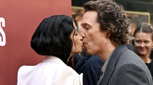 Мэттью Макконахи и его жена Камила Алвес целуются на лондонской премьере его нового фильма «Потерянный автобус». Камилла выглядит свежо и кокетливо в белом. Мэтью тоже предпочел классику. А вот его коллега по фильму Америка Феррера получила шквал негативных отзывов за красный костюм на премьере...