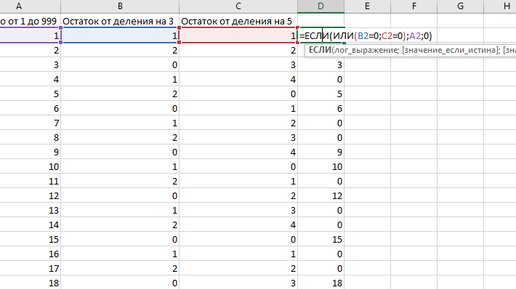 Проект Эйлера в Excel. Задача 1 - Числа, кратные 3 или 5.
