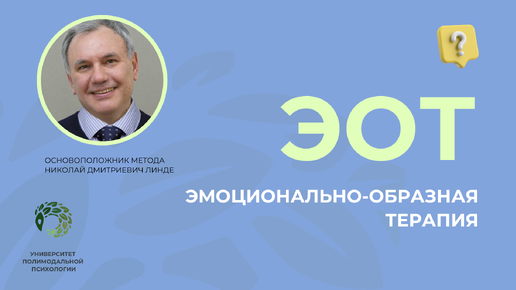 Эмоционально-образная терапия (эот) — это новый отечественный терапевтический метод. Целью эот является обнаружение и позитивная трансформация неосознаваемых хронических скрытых эмоциональных состояний человека, которые имеют психологические или психосоматические последствия. Эта задача решается при помощи создаваемых клиентом спонтанных образов,выражающих проблемное эмоциональное состояние, последующим анализом этих образов, специальными воздействиями, направленными на преобразование состояний через работу с образами...