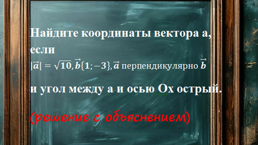 Поскольку векторы а и b перпендикулярны, их скалярное произведение равно нулю. Выразим его в координатах: Мы получили уравнение относительно двух переменных. Решить его мы не сможем, не составив другого уравнения с этими же переменными. Второе уравнение относительно переменных ха и уа можно составить из формулы длины вектора а, которая нам известна: Составим систему из полученных уравнений и решим ее: Заметим, что для решения системы относительно двух переменных нам нужно именно два уравнения...