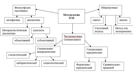 Как видите, методология ТГП довольна обширна и, на первый взгляд, сложна и запутана. Но все на самом деле проще, чем кажется. Выстроим следующую систему методов Теории государства и права: 1. Всеобщие методы Это основные, универсальные методы, которыми пользуются все другие науки, по факту, это больше принципы мышления. По-другому их еще называют философскими. Первый метод - метафизика, в общих сферах - учение о начале, о сущем, в ТГП же с помощью данного метода государство и право исследуются...