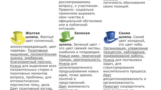 Использование метода британского психолога Эдварда де Боно "Шесть шляп мышления" на классном часе