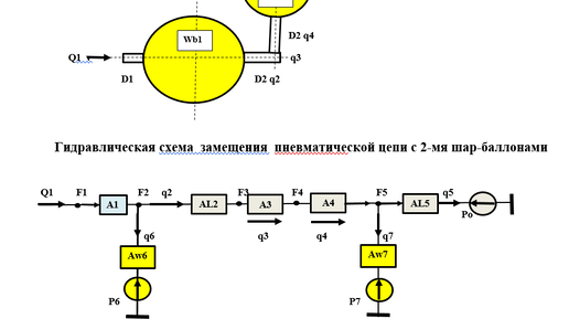 Методика расчёта переходного режима гидравлической схемы замещения пневматической системы с 2-мя шар-баллонами