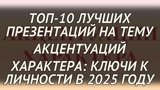 ТОП-10 лучших презентаций на тему акцентуаций характера