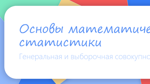 Основы математической статистики. Генеральная и выборочная совокупности.