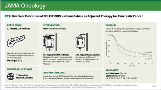 В соревновании схем адъювантной терапии победила самая неприятная по токсичности комбинация цитостатиков, хорошо переносимый фаворит прошлых лет отстал. Если тяжело при адъювантной терапии – больше шансов жить без проблем и вообще дольше жить. Год назад II фаза проводимого в 17 клиниках Франции исследования PANOPTIMOX-PRODIGE 35 при метастатической панкреатической карциноме выбрала наиболее результативную из трёх химиотерапевтических комбинаций и это была 4-месячная FOLFIRINOX с последующей поддержкой фторурацилом и лейковорином...