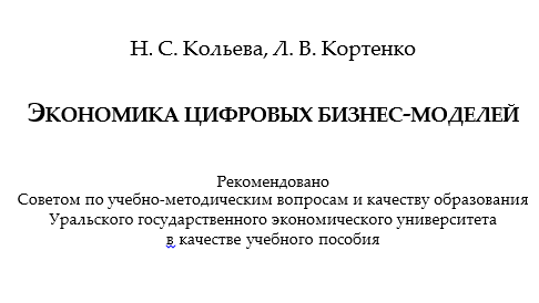 Для цитирования: Кольева Н.С., Кортенко Л.В. Экономика цифровых бизнес-моделей / Министерство науки и высшего образования Российской Федерации. – Екатеринбург : УрГЭУ, 2025 – 249 с. В современном мире бизнес-модели претерпевают значительные изменения под влиянием цифровизации и технологических инноваций. Цифровая трансформация затрагивает все сферы экономики, что делает изучение цифровых бизнес-моделей особенно актуальным для студентов и специалистов в области информационных технологий, экономики и управления...