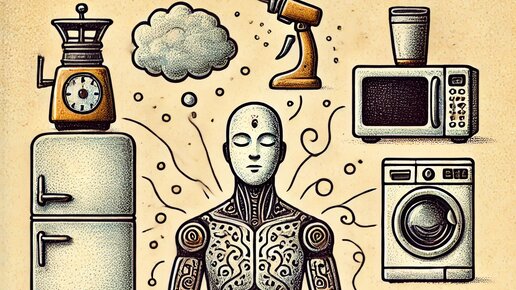 Техник: Думаешь, машина может осознать себя? Цифр: Осознать? Ты имеешь в виду осознание в стиле "я мыслю, значит, существую"? Или что-то вроде «я больше не хочу кипятить воду без духовного смысла»? Хотя, представь себе холодильник с «профессиональным выгоранием». Наверное, это первый шаг к осознанию своей сущности. Техник: Ну, представь, что машина вдруг понимает, что все её вычисления — это не просто технический процесс, а нечто большее. Она больше не просто выполняет инструкции, а делает это, потому что через это ощущает своё существование...