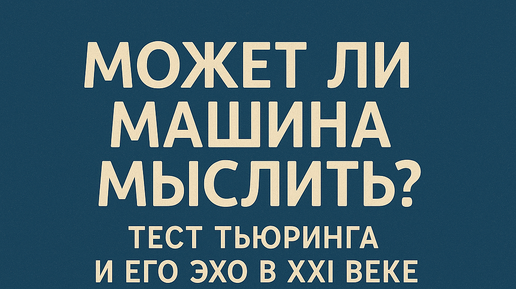 🎬 Искусственный интеллект, тест Тьюринга и вопрос, на который пока не найден окончательный ответ: может ли машина действительно думать?