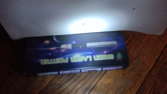 Многие считают, что от двух независимых источников не бывает интерференции. Еще как бывает. У нас тут еще одна лазерная указка завалялась с двумя лампочками в фонарике. Но нам ведь в волновой теории глубоко фиолетово какой источник, у нас к щелям и отверстиям подходит «волновой фронт». Смотрим сначала на дифракцию. Странный какой-то волновой фронт… Интерференция просто чудесная. Правда, если источник немного к щелям подвинуть, то оно несколько двоиться начинает...