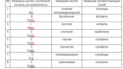 Содержание статьи. I. Общая характеристика. 1. Общая формул: НnА или НхЭОу (НхЭ) 2. Определение. Кислоты (НnК) - сложные вещества, состоящие из атомов водорода и кислотно-го остатка. Его валентность равна индексу у Н, то есть т.е количеству атомов во-дорода (для начального обучения). Кислоты - сложные вещества, состоящие из катионов водорода и анионов кислотного остатка. Валентность кислотного остатка определяется количеством атомов во-дорода, способных замещаться металлами. 3. Физические свойства...
