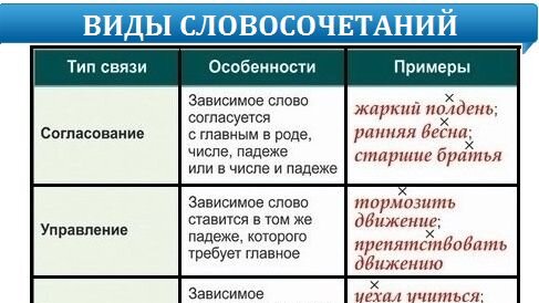 Отличие типов словосочетания