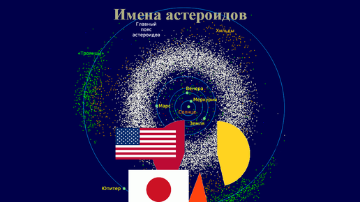 Из 619 тысяч нумерованных астероидов лишь 23 024 имеют имена. За американскими и японскими астрономами 53,7 % имен