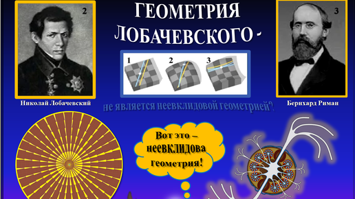 Существует распространенное представление о том, что геометрия Лобачевского - это неевклидова геометрия. На самом деле, если вы попытаетесь разобраться более подробно в данном вопросе - то обнаружится, что: ни Лобачевский, ни его последователь Риман - фактически, не являются создателями геометрических концепций, сколько-нибудь далеко выходящих за рамки логики евклидовой геометрии. Скорее - тут речь должна идти о развитии той же самой логики - с переходом на уровень сферических и криволинейных объектов...