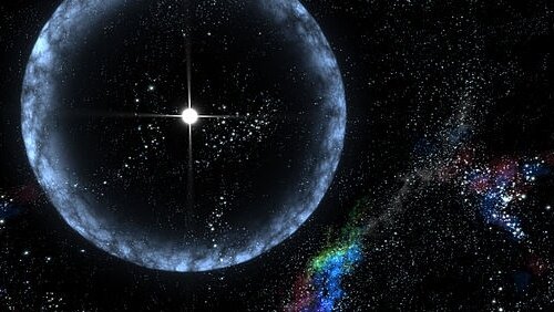 Нейтронная звезда — космическое тело, являющийся одним из возможных результатов эволюции звёзд, состоящий, в основном, из нейтронной сердцевины, покрытой сравнительно тонкой (∼1 км) корой вещества в виде тяжёлых атомных ядер и электронов. Массы нейтронных звёзд сравнимы с массой Солнца, но типичный радиус нейтронное звезды составляет лишь 10—20 километров. Поэтому средняя плотность вещества такого объекта в несколько раз превышает плотность атомного ядра (которая для тяжёлых ядер составляет в среднем 2,8·1017кг/м³)...