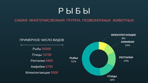 Рыбы - самая многочисленная по видовому составу группа современных позвоночных животных. По некоторым оценкам они составляют чуть больше половины от общего числа позвоночных, что означает, что их больше, чем амфибий (лягушки, саламандры), рептилий (змеи, ящерицы, черепахи), птиц и млекопитающих вместе взятых! Но сколько же всего видов рыб обитает на Земле? На самом деле, подсчитать их число - задача сложная и нетривиальная. В мире такое огромное количество водоемов, что ни один исследователь при...