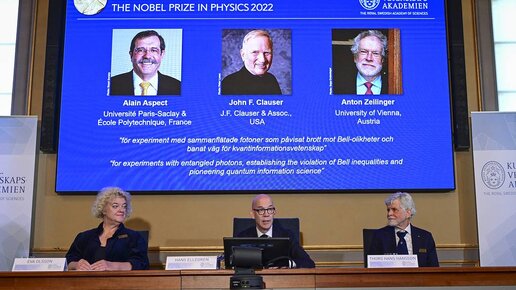 Нобелевская премия в области физики 2022 года присуждена группе ученых - французу Алену Аспе, американцу Джону Клаузеру и австрийцу Антону Цайлингеру. Об этом объявил во вторник Нобелевский комитет Королевской академии наук. Премия присуждена за "эксперименты с запутанными фотонами, установление [принципа] нарушения неравенств Белла и первенство [в создании] науки о квантовой информации", говорится в мотивировочной части решении Нобелевского комитета. Ученые описали эффект "квантового запутывания",...