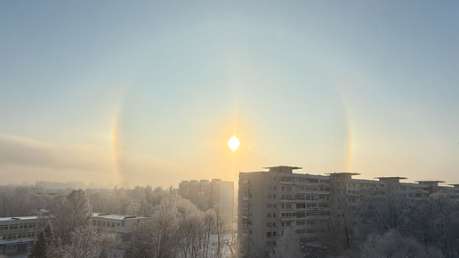На фоне необычно снежной зимы и морозной погоды появилось нечто еще более неожиданное для января — солнце. Да не просто появилось, а вместе с красивым и редким явлением — солнечным гало. Такое свечение возникло из-за сочетания морозной погоды, повышенной влажности и перистых облаков не слишком большой плотности. Фото в редакцию прислал читатель, и забавно, откуда он сделал снимок: «Тут гало рядом с улицей Гало», — прокомментировал минчанин. Гало возникают из-за ледяных кристаллов в атмосфере, которые обычно связаны с высокими перистыми облаками...