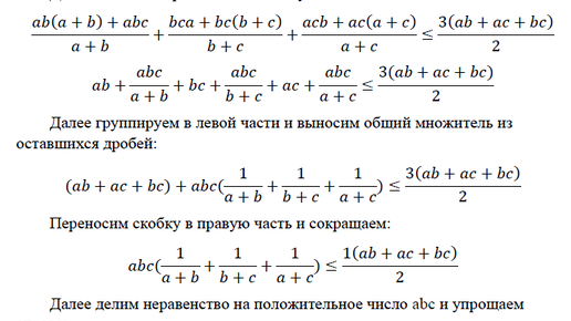 Продолжаем серию заметок про неравенства. Да, неравенство есть не только в экономике, но и в математике. В математике их очень много, особенно в олимпиадной. И тут их не скрывают, не маскируют. До этого мы поднимали тему с транснеравенствами и неравенствами о средних. Подобные задания не встретишь в профильном ЕГЭ, но они есть в олимпиадах и ДВИ МГУ по математике. Задание: "Для положительных чисел a, b, c докажите неравенство ab/(a+b)+bc/(b+c)+ac/(a+c)<= 3(ab+ac+bc)/(2(a+b+c)). Обычно в таких неравенствах...