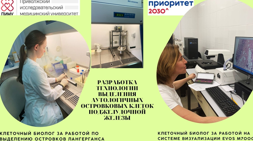 Технологию лечения сахарного диабета и онкологии путем трансплантации клеток поджелудочной железы создают ученые ПИМУ в рамках федеральной программы «Приоритет-2030». Ведутся разработки по выделению клеток поджелудочной железы для лечения инсулинозависимых пациентов, а также пациентов с хроническим панкреатитом и злокачественными новообразованиями на основе их собственного биоматериала. Этот проект уникален не только для российской, но и для мировой медицины. Работа идет в тесном сотрудничестве с учеными ИПФ РАН...