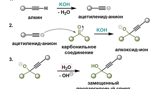 Реакция Фаворского — это химическая реакция, в которой ацетиленовые соединения (алкины) с терминальной тройной связью вступают во взаимодействие с карбонильными соединениями (альдегидами или кетонами) в основной среде с образованием пропаргиловых спиртов. Классические условия проведения предполагают использование концентрированного водного или спиртового раствора щелочи (KOH или NaOH), часто с нагревом. В современной химии классический метод часто заменяют более эффективным двухстадийным процессом...