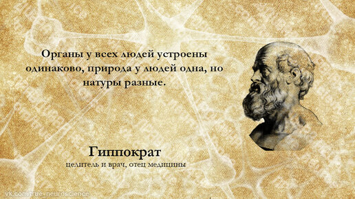 Гиппократ, отец медицины: "Органы у всех людей устроены одинаково, природа у людей одна, но натуры разные." При всей однотипности организмов люди существенно отличаются характерами. Мы все – человечество, но очень разное по содержанию...