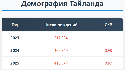 Таиланд догоняет Южную Корею по уровню рождаемости.