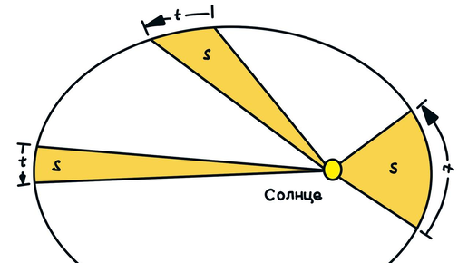 "Орбита каждой планеты представляет собой эллипс, в одном из фокусов которого находится Солнце." Этот закон отверг древнее представление о круговых орбитах. Кеплер показал, что планеты движутся по вытянутым траекториям (эллипсам), причем Солнце расположено не в центре, а в одном из фокусов. Чем больше вытянута орбита, тем больше её эксцентриситет. Например, у Меркурия орбита наиболее эллиптическая среди планет Солнечной системы, а у Венеры — почти круговая "Радиус-вектор, соединяющий планету и Солнце, за равные промежутки времени заметает равные площади...