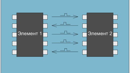 Здравствуйте, Дорогие друзья! В этой статье мы с Вами разберемся с тем, как между собой «общаются» электронные компоненты и модули. Речь конечно же пойдёт об программируемых электронных компонентах. Самый простой способ взаимодействия – передача сообщения в виде короткого импульса от вывода одного компонента на вывод другого: Основные недостатки данного способа: - Низкая скорость передачи данных; - Требуется большое количество выводов для организации линий связи; - Требуется детальная проработка программного кода с целью организации точного позиционирования импульса во временной области...