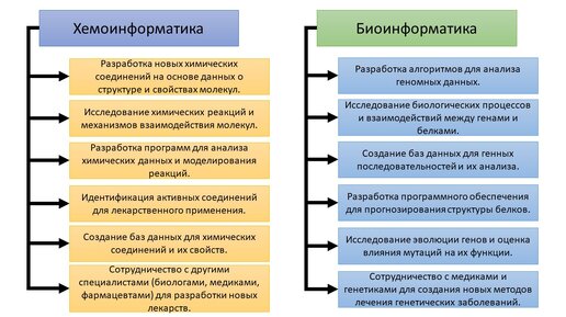 Введение Хемоинформатика и биоинформатика – это две прикладные дисциплины, которые находят свое применение в современном научном и прикладном исследовании. Обе дисциплины используют информационно-компьютерные технологии и методы данных для анализа биологических и химических систем, однако они имеют свои особенности и приложения. Отличие дисциплин хемоинформатика и биоинформатика Хемоинформатика и биоинформатика изучают разные объекты исследования. Хемоинформатика связана с изучением химических свойств...
