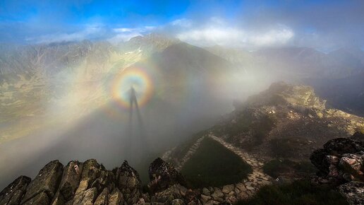 Можно часами смотреть на плывущие по небу облака, считать падающие звёзды, смотреть на закаты или вспоминать стихотворения из детства при виде радуги. Атмосфера, взаимодействуя с частицами разной природы, творит чудеса, а мы – наблюдатели. В этой статье я хочу рассказать о 6 атмосферных оптических явлениях, которым вы точно удивитесь. 1. Броккенский призрак Звучит мистически, но это не персонаж из фильмов ужасов. «Призраком» можете оказаться и вы. Броккенский призрак – это оптическая иллюзия, возникающая в горах при наличии туманов или облачности...