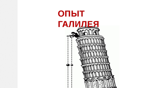 Молодой профессор университета Падуи, Галилей, прославил в веках одну падающую башню - Пизанскую. Он бросал с вершины башни пушечные ядра и мушкетные пули и наблюдал, как они падают. Оказалось, что