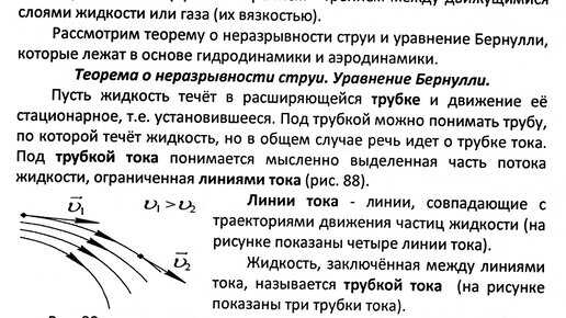 На рисунке показана трубка постоянного сечения, имеющая в одном месте сужение. В месте сужения к трубе присоединена отводная трубка, открытая для воздуха. Если по трубе пропустить воду с большой скоростью, то, согласно уравнению Бернулли, в месте сужения скорость воды больше, а её давление меньше, чем в трубе. Можно подобрать такую скорость потока, что в суженой части трубы давление станет меньше атмосферного. Тогда в отводную трубку будет засасываться воздух. Если отводную трубку соединить с сосудом,...