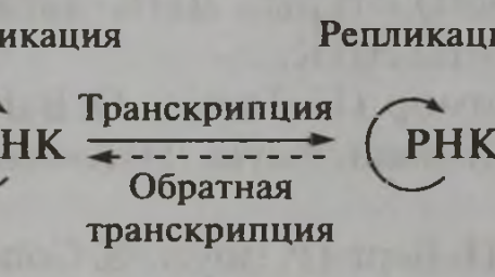 В данной книге сказано: “В результате выдающихся открытий Дж. Уотсона, Ф. Крика, Х.-Г. Кораны, А. Корнберга и других крупнейших молекулярных биологов, удостоенных нобелевских премий, уже в середине 60-х годов XX в. окончательно утвердился основной постулат молекулярной генетики, формулирующий магистральный путь реализации генетической информации в клетке: ДНК -> РНК -> Белок. Затем были детально изучены механизмы воспроизведения (репликации) ДНК, транскрипции (биосинтеза РНК) и трансляции (биосинтеза...