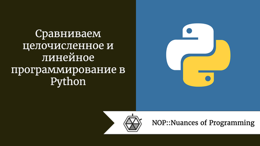Источник: Nuances of Programming Почему линейное программирование называется так? Оба слова могут вводить в заблуждение. Если говорить вкратце, линейность не имеет никакого отношения к работе с кодом. Все дело в оптимизации переменных с различными ограничениями. В этой статье мы обсудим еще один тип оптимизации — целочисленное программирование. Разберемся, почему четкое понимание существующей задачи необходимо для выбора правильного решателя. В конце напишем модель, которая сможет решить целый класс задач по оптимизации...