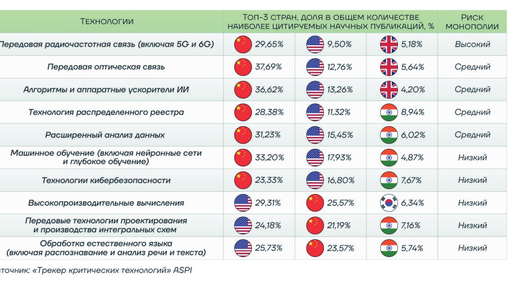 Китай превращается в научно-техническую сверхдержаву. За период 1996-2020 годов страна увеличила инвестиции в исследования и разработки на 3299%. Государство стало мировым лидером по количеству высокоцитируемых научных публикаций во многих технологических областях. КНР укрепила свои позиции в подготовке и привлечении ведущих специалистов в области искусственного интеллекта, сократив отставание от США. Кроме того, Китай занял первое место в мире по количеству действующих внутренних патентов на изобретения и по числу международных заявок по Договору о патентной кооперации...