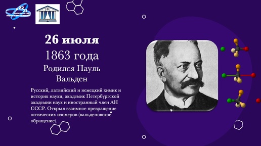 162 года назад в имении Розенбек Розулской волости Вольмарского уезда Лифляндской губернии Российской империи родился будущий химик Пауль, или как его звали в Петербурге, Павел Иванович Вальден. Вальден - уникальный ученый, который успел прожить почти век и побывать как членом Петербургской академиии наук (то есть «обычным» российским академиком), так и иностранным членом уже Академии наук СССР, поработать в трех разных странах и оставить след как в химии, так и в ее историографии. Вальден работал...