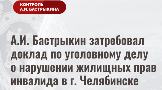 А.И. Бастрыкин затребовал доклад по уголовному делу о нарушении жилищных прав инвалида в г. Челябинске