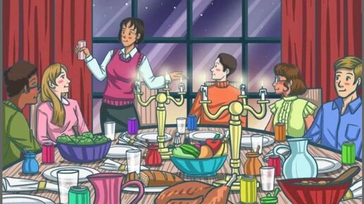 На следующем изображении вы можете увидеть людей, сидящих за столом. Изображение содержит много предметов, но вам следует найти только перчатки.