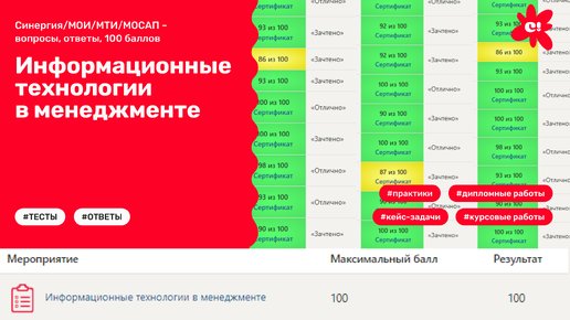 Информационные технологии в менеджменте (Синергия/МОИ/МТИ/МОСАП – вопросы, ответы, 100 баллов)