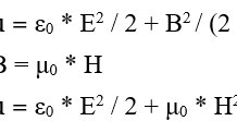 Определение энергии электромагнитного поля из Википедии: «Для электрического и магнитного полей их энергия пропорциональна квадрату напряжённости поля. Строго говоря, термин «энергия электромагнитного поля» является не вполне корректным. Вместо него в физике обычно используют понятие плотности энергии электромагнитного поля (в определённой точке пространства). Общая энергия поля равняется интегралу плотности энергии по всему пространству.» Плотность энергии электромагнитного поля является суммой плотностей энергий электрического и магнитного полей...