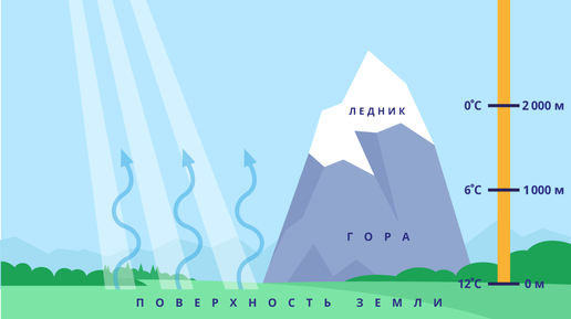 Солнце не только освещает земную поверхность, но и нагревает её своими лучами: чем выше Солнце, тем сильнее нагрев. На разных широтах Солнце поднимается над горизонтом на разную высоту. В результате экваториальные и тропические широты получают больше солнечного тепла, чем полярные. Разные типы земной поверхности нагреваются по-разному. Суша нагревается быстрее и сильнее, чем вода. Песчаный пляж нагревается быстрее и сильнее, чем покрытый травой луг. Земля, покрытая снегом, почти не нагревается, потому что солнечные лучи отражаются от чистой белой поверхности...