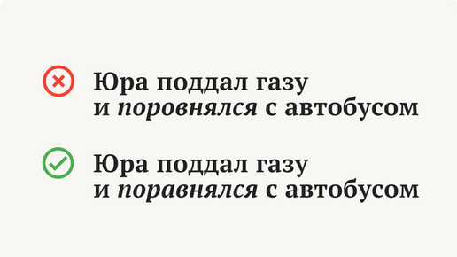 Железный принцип, усвоенный в начальной школе: хочешь проверить гласную — подбирай однокоренное слово, где она под ударением. Но выбрать правильное проверочное слово получается не всегда. А еще в русском языке есть многочисленные оговорки в виде чередующихся и непроверяемых гласных, а также не поддающихся обоснованию исключений. 1. Юра поддал газу и пор...внялся с автобусом. Правильно: поравнялся Слово «поравнялся» не проверяется словом «ровно». В нем может быть как «а», так и «о». Чтобы не ошибиться...