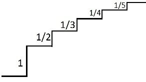 В ней высота ступенек постепенно уменьшается. Первая ступенька высоты 1, вторая – ½, третья – 1/3 и так далее. Вопрос:...