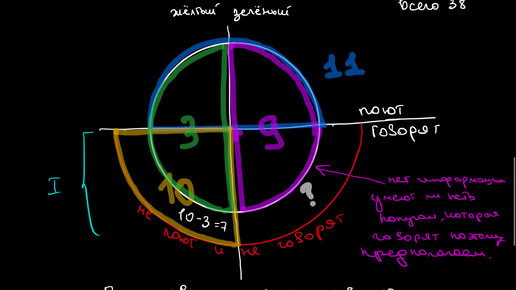 первая часть: вторая часть: Внимание! Ниже представлено неверное решение! Исправление и почему я не удаляю этот пост: https://dzen.ru/a/ZgFHzhEAth8fRTPO опять продолжаем решать задачи файлика: http://mmmf.msu.ru/archive/20212022/z5/Диаграммы_Эйлера.pdf :) Сегодня у нас задача, к которой я предлагаю подойти комплексно. Мы рассмотрим невозможные события и я покажу как именно можно предполагать значения в диаграммах, а главное вы увидите почему это важно! 8. В клетке сидят 38 попугаев двух цветов: жёлтого и зелёного...