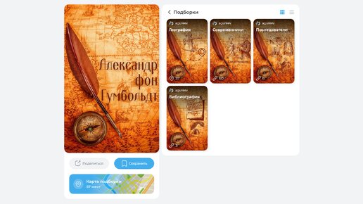 Незаслуженно забытый немецкий ученый определенно стоит вашего внимания. Географ, натуралист и путешественник, новатор своего поколения, Александр фон Гумбольдт стал знаменит еще при жизни, более двухсот лет назад. Пользователь Алексей Агуреев (@agureev) проделал огромную работу и создал невероятно насыщенную тематическую коллекцию с разнообразной информацией о знаменитом ученом. Здесь собраны и современники Гумбольдта и его последователи, библиография и географическая часть, где на карту нанесены знаковые места, которые в свое время посетил основатель физической географии и ландшафтоведения...