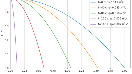 Определение времени опорожнения бака самотёком через отверстие внизу бака