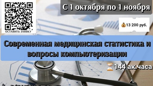 📚Центр повышения квалификации предлагает пройти повышение квалификации по программе: «Современная медицинская статистика и вопросы