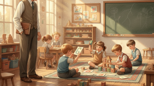 Сегодня я пришла в сад не с теорией в голове, а с ощущением: сейчас будет важно. Потому что рядом шёл человек, который всю жизнь искал ответ на один простой, но глубокий вопрос: «Что делает ребёнка ребёнком?» Даниил Борисович был одет скромно: рубашка, очки, потрёпанная тетрадь в кармане. Он не спешил. Смотрел не на стены, не на игрушки, а на деятельность: кто с кем взаимодействует, как решают конфликты, что берут в руки первым делом. - В этом возрасте, - сказал он, едва мы переступили порог, - всё решает ведущая деятельность...