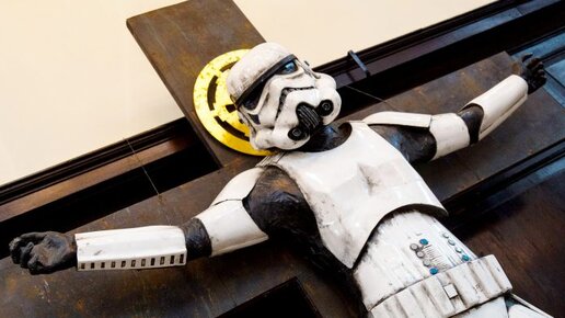 Трудно сказать, у кого больше влияния на умы людей – у христианства или у Star Wars ™… и кто получает преимущество в освещении в наши дни. Но на этой неделе христианство выиграло бой, когда возмущенные прихожане вынудили снять скульптуру британского художника Райана Калланана стоимостью 12 000 фунтов стерлингов (около $ 16 700) с благотворительного аукциона в исторической церкви Святого Стефана Уолбрука в центре Лондона, ей, кстати, 500 лет...